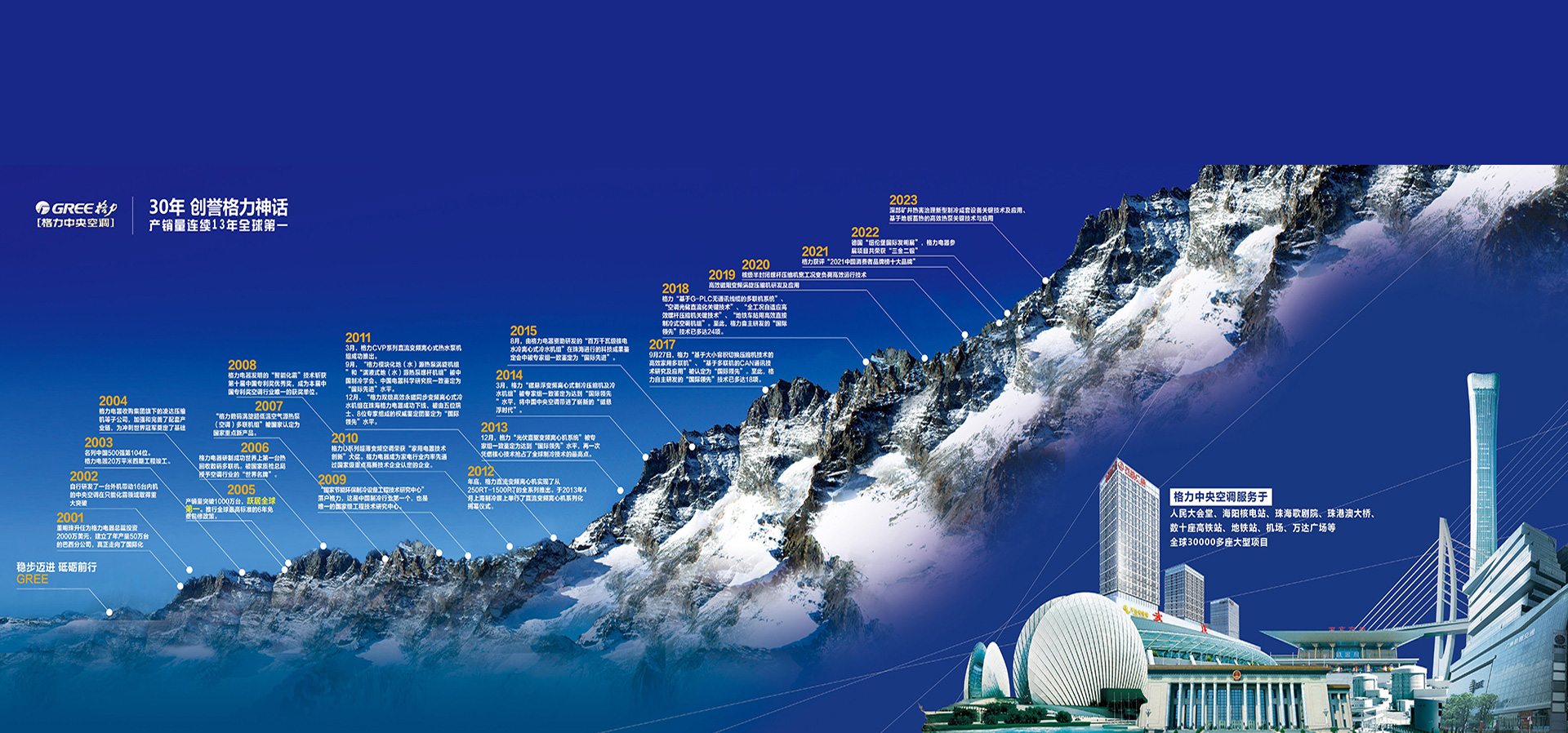 在激烈的市場競爭中,格力空調先后中標2008年“北京奧運媒體村”、2010年南非“世界杯”主場館及多個配套工程、2010年廣州亞運會14個比賽場館、2014年俄羅斯索契冬奧會配套工程等國際知名空調招標項目,在國際舞臺上贏得了廣泛的知名度和影響力,引領“中國制造”走向“中國創造”。